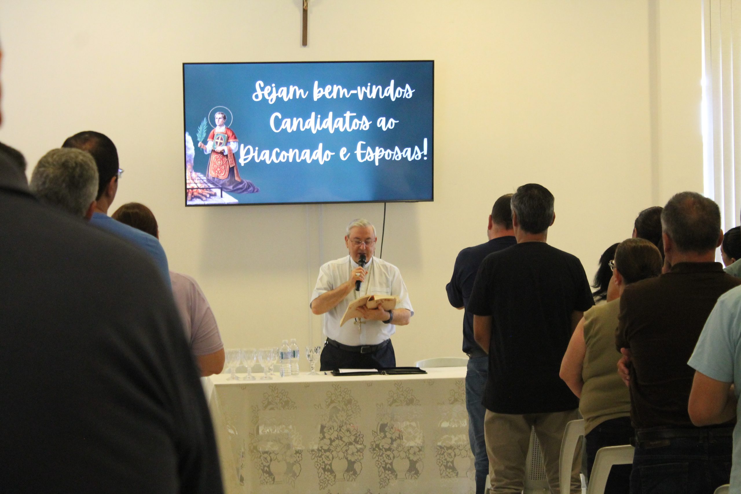 Dom Cesar acolheu os futuros candidatos e suas esposas, falou da importância do diácono na vida da igreja, fundamentou sua fala mostrando o valor do CHAMADO, que é realizado pela igreja, enfatizando os fundamentos teológicos do chamado vocacional.