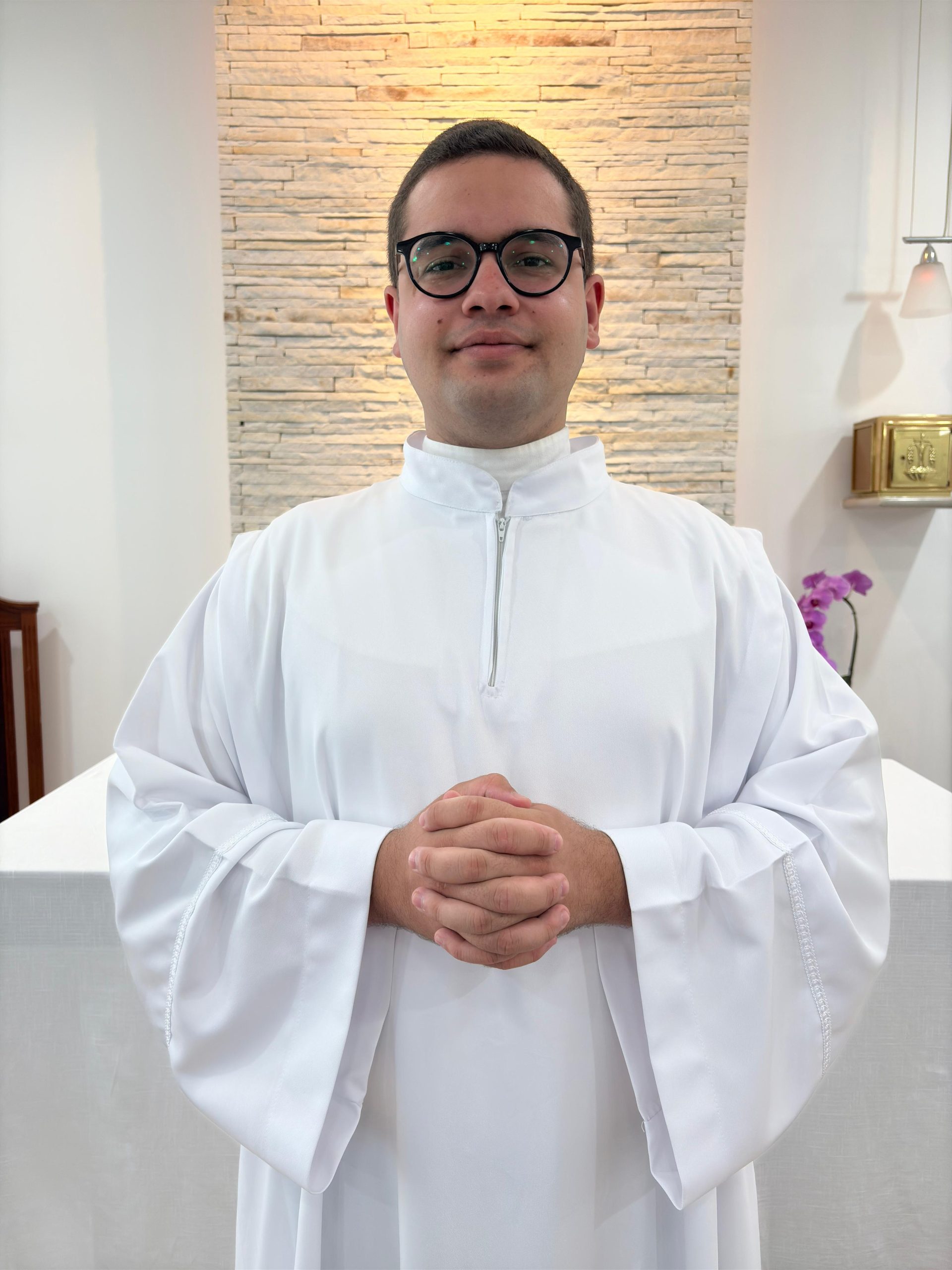 “Com imensa alegria, me preparo para a Ordenação Diaconal, um chamado ao serviço e à doação de vida. Sob o lema “A esperança não decepciona” (Rm 5,5), que eu possa ser um sinal de Cristo para aqueles que mais precisam. Confiante na graça que me sustenta, conto com sua oração neste tempo de preparação”.