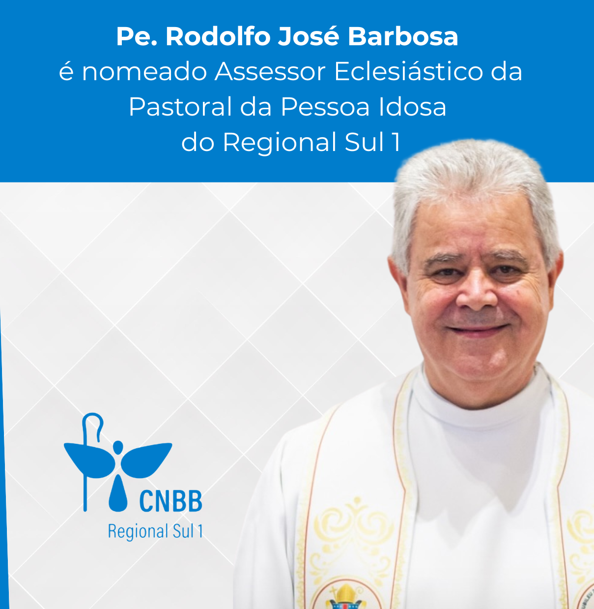 O Regional Sul 1 da CNBB anuncia a nomeação do Pe. Rodolfo José Barbosa, da Diocese de São José dos Campos, como Assessor Eclesiástico da Pastoral da Pessoa Idosa, com início da missão em janeiro de 2026.